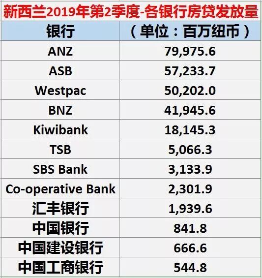 以下是新西兰2019年第2季度各银行房贷发放量的对比: