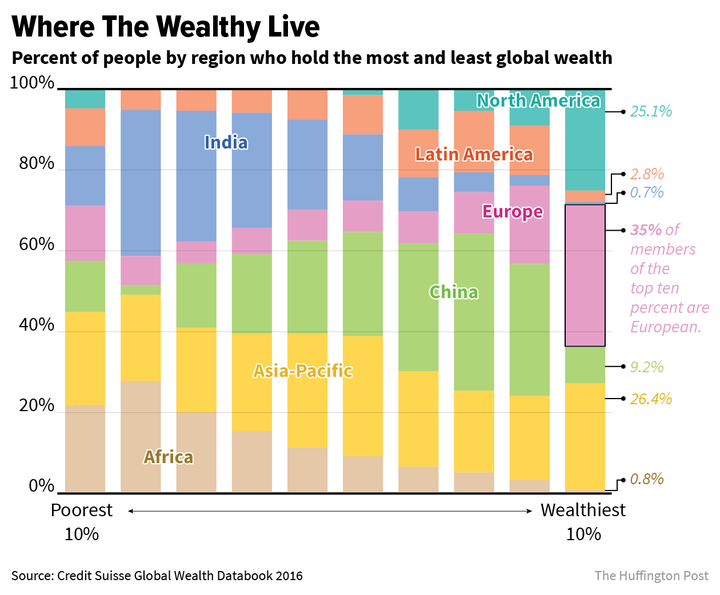 乐施会指出,2016年,世界上最富有的1%人口持有的财富略占全球的一半以上。福布斯榜单上的1,810位亿万富翁(男性占89%)拥有6.5万亿美元的财富,相当于人类70%的财富。