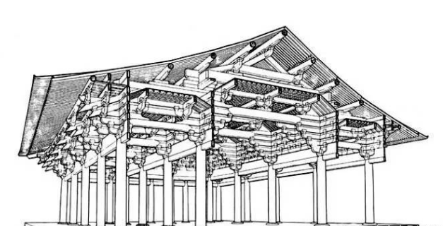 构架,这里指建筑的结构框架,是中国古典木结构建筑最重要的组成部分。在华夏建筑体系里,它并没有被隐藏,重点部位反而被刻画强调,直观地表现在外观上。这种对结构构件及其关系的真实表达是华夏建筑文化的一大特征,也因此通常认为这些木结构的古建筑是非常“建构的”。