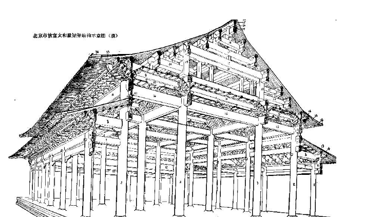 从剖面上可以直观地感受到木构架的重要性。这里以建筑史书上最经典的两个剖面为例子:佛光寺与太和殿。