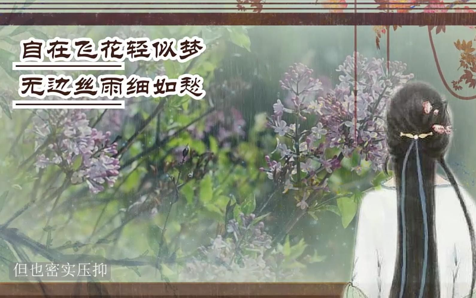 自在飞花轻似梦,无边丝雨细如愁。宝帘闲挂小银钩。