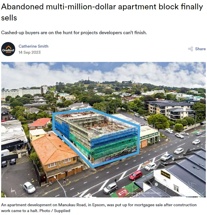 据悉,该公寓名称为Epsom Central Apartments,建筑工程在奥克兰市议会发现其未符合建筑许可要求后,于2019年停工。据称2年前该公寓的合伙企业就已经进入资产清算,向借贷人和承建公司欠下1300万纽币债务。