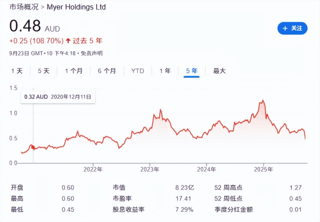 2020年,当澳大利亚百年零售商Myer的股价跌至16澳分的谷底时,其线上销售额却意外同比增长100%,成为黑暗中的一缕曙光。这一数字不仅让Myer暂时抵御了线下销售下滑13.1%的冲击,更推动其股价在随后几年里一路飙升至127澳分,涨幅惊人。